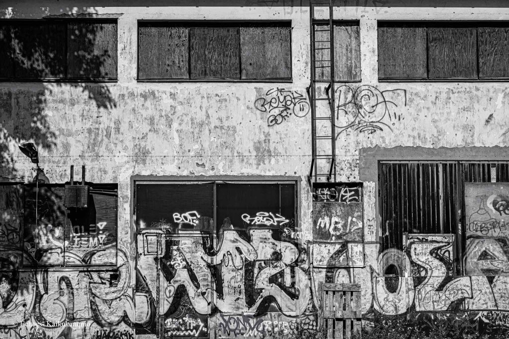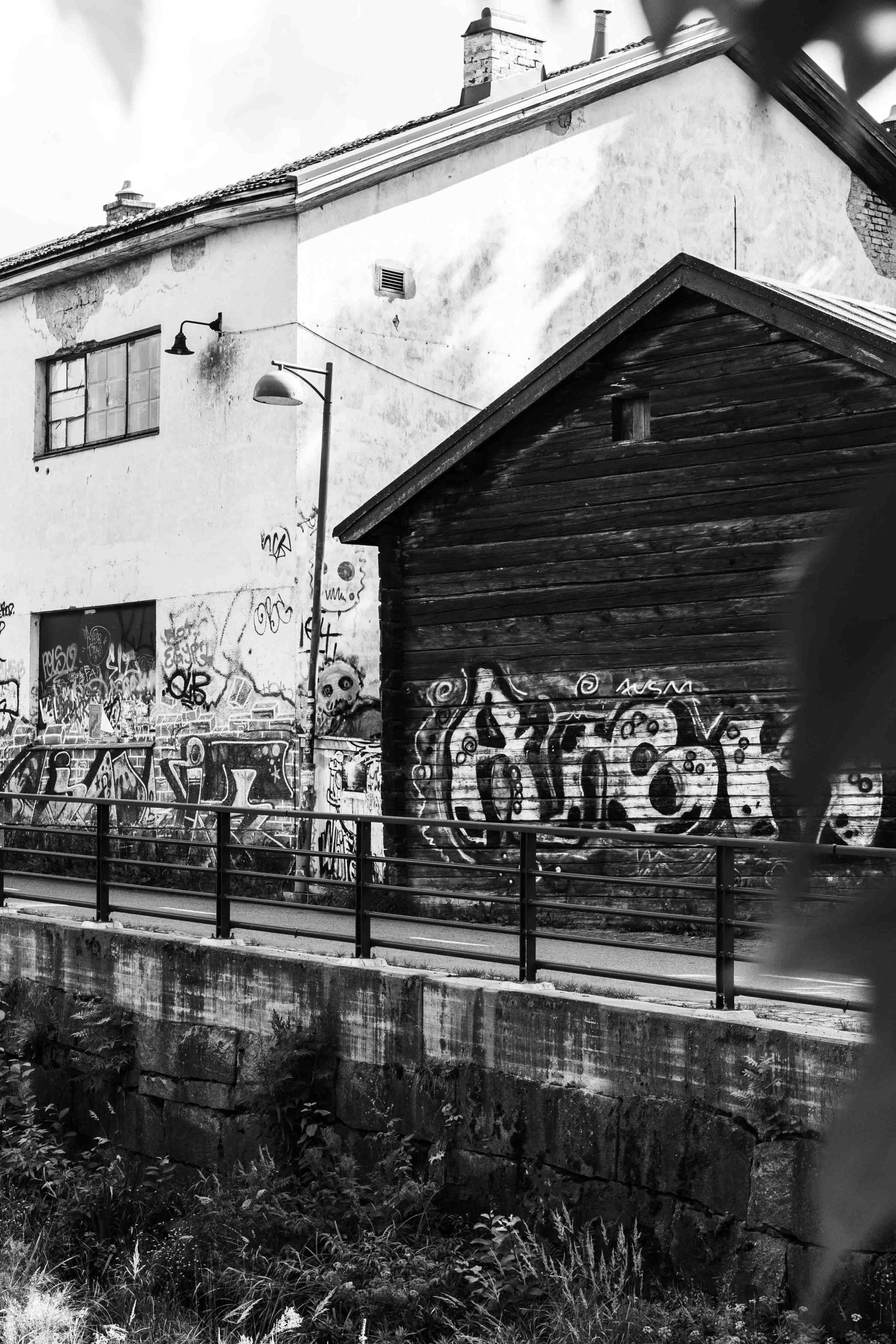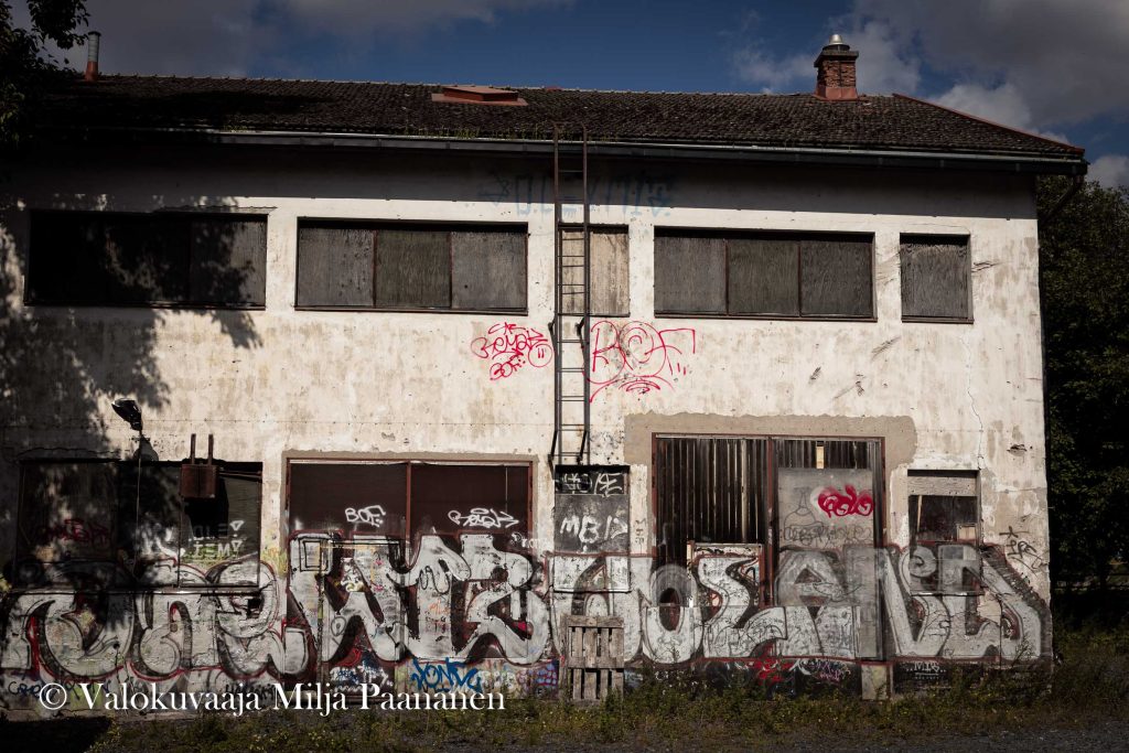 In the heart of Oulu, within Ainola Park, stand two distinctive buildings where wood and concrete merge. These structures have found a new life as canvases for street art. Their contrasting yet harmonized appearance creates a visually captivating interplay that resonates with passersby in the park.